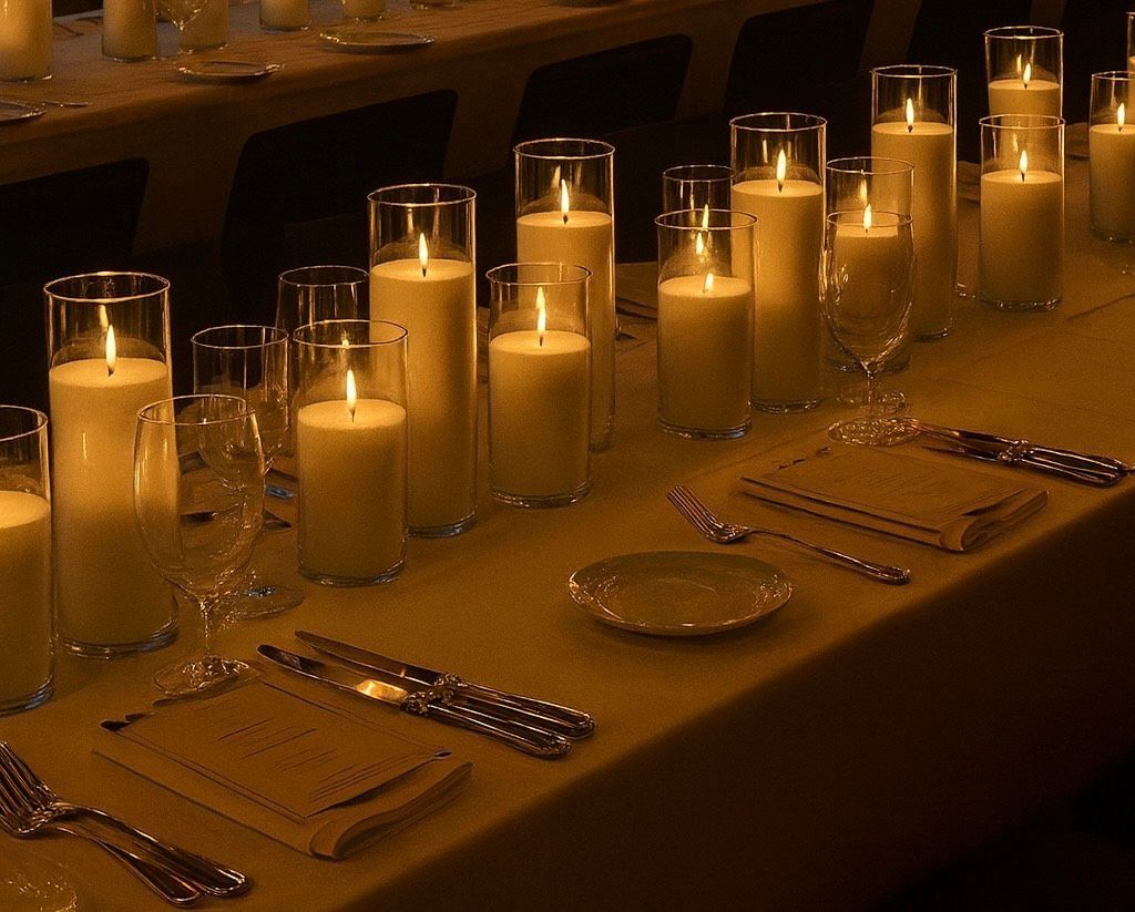 At Loux Events, we offer premium candle rentals crafted with high-quality granulated wax for a clean, long-lasting burn. Our candles create a warm, refined glow that transforms any space, adding elegance and sophistication to weddings, corporate events, and luxury celebrations throughout San Diego and Southern California.
