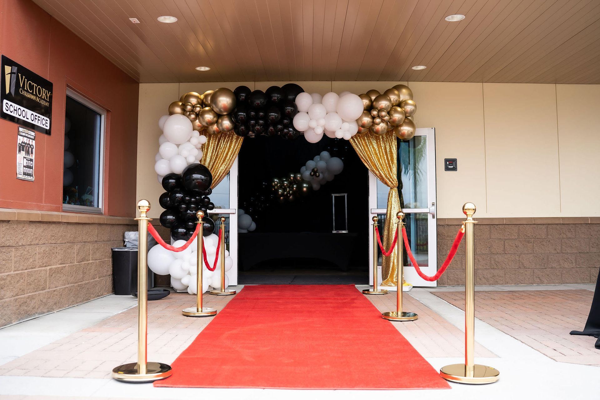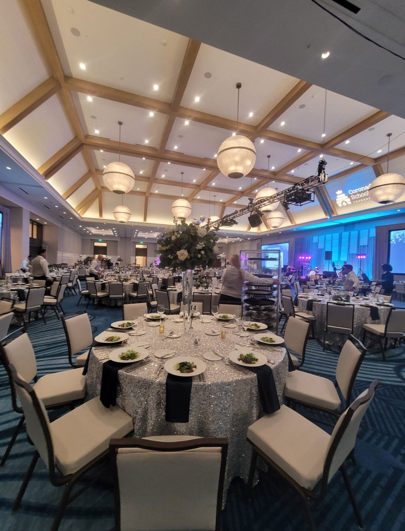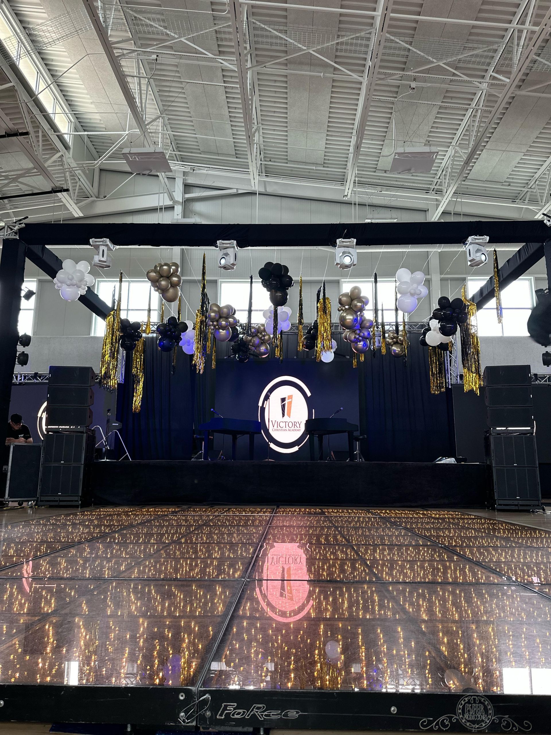 Each year, Victory Academy hosts its annual fundraising event for over 300 VIP attendees. I have had the pleasure of planning, designing, and transforming the entire school auditorium into an incredible venue. This includes draping the entire court, setting up a dance floor, designing and constructing the main stage, arranging centerpieces, providing lighting and balloon decorations. This event presents a significant challenge for our dedicated team, and it is always a rewarding experience.