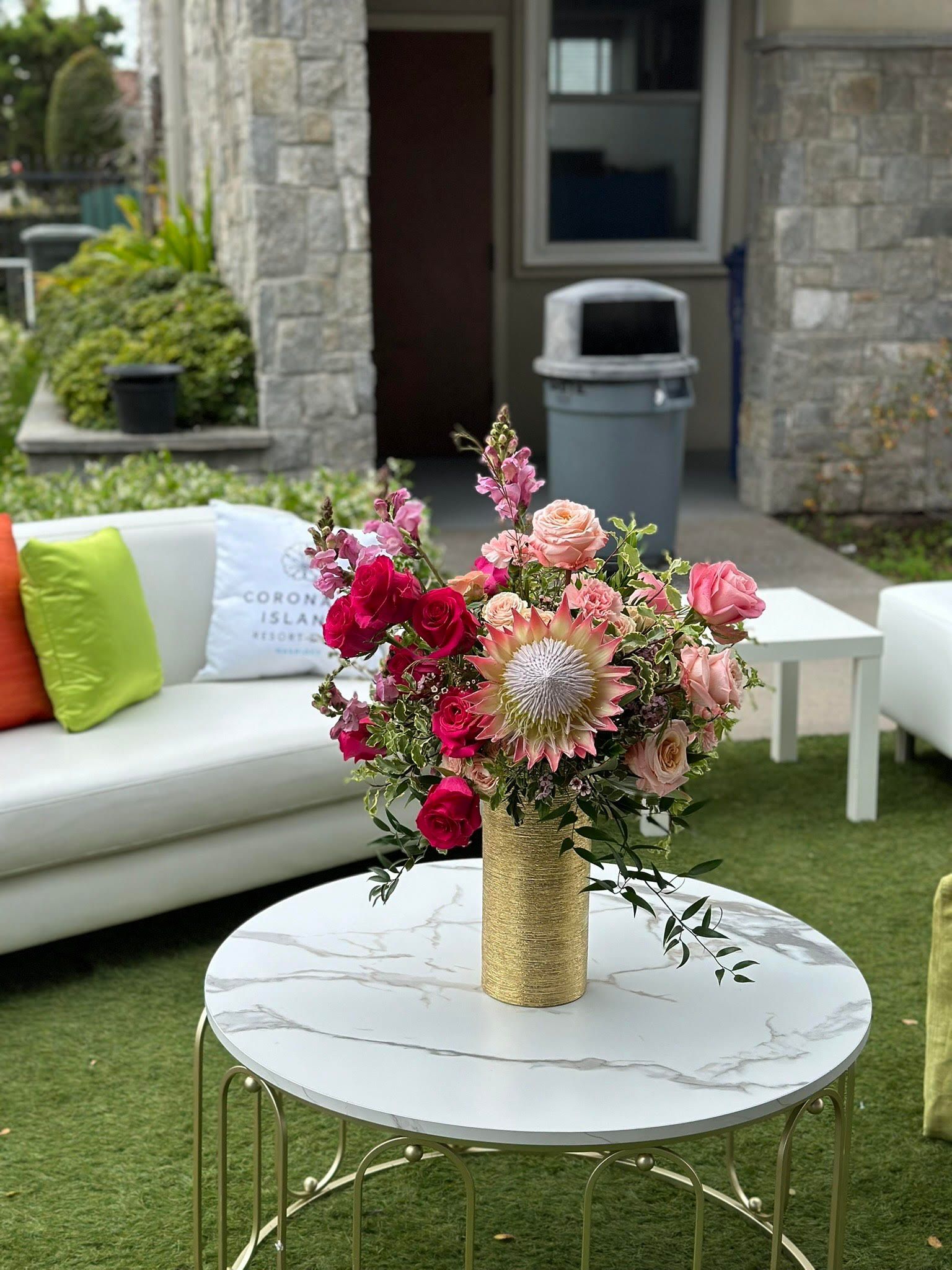 In 2023, the Coronado Chamber of Commerce kicked off the year with a major event attended by over 5,000 people. Attendees had the opportunity to sample dishes from various local restaurants, enjoy wines from the region and admire the work of talented artisans. I had the pleasure of designing and decorating the entire event, including the two main entrances, VIP areas, and floral arrangements for various sections. Our goal is to ensure that the event looks as spectacular as it truly is.